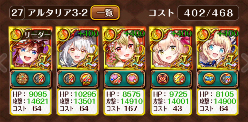 ・ボス戦1は、コノハSSで突破すればチェインを大幅に稼げるのでASで倒さないようにします。
