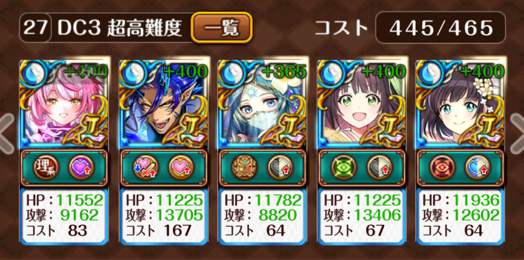 ・最大の難所がボス戦2で、怒り後は毎ターン1万2500?ぐらいの防御貫通3連撃が飛んできます。1Tでワンパンするか毎ターン全回復できる編成にする必要があります。本デッキは攻撃が来る前にワンパン!