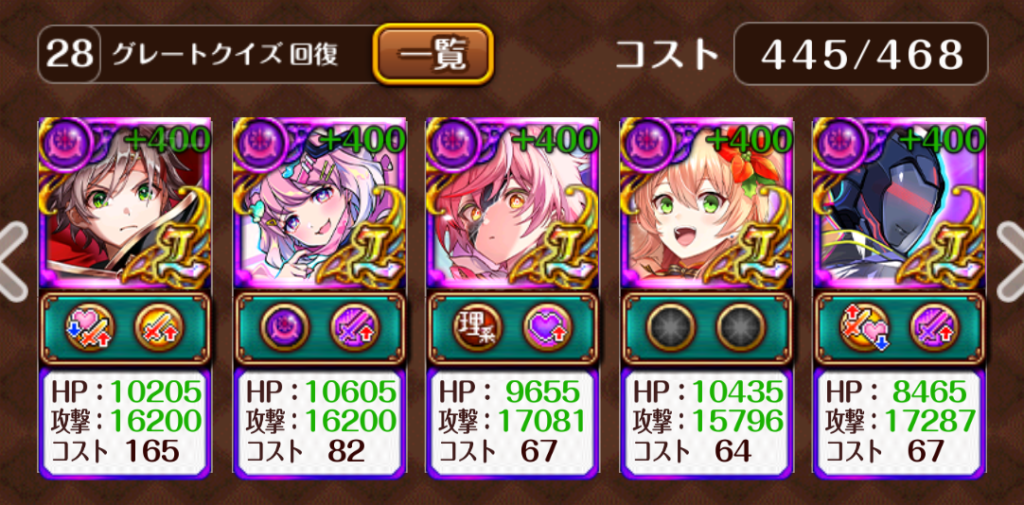 ・4~5T目は、おくらぴのSSを溜めるために4問以上解答し、シャローム(SSがいないので)がL化しないように、5問以下に収めます。